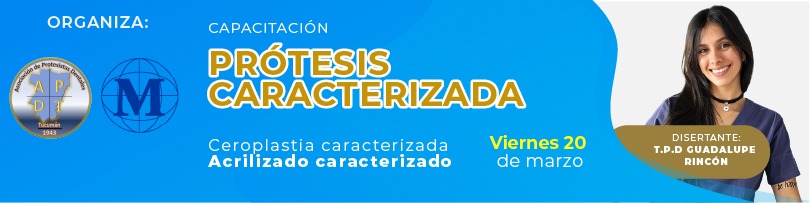 Capacitación presencial en Caracterización de Prótesis, orientada a Técnicos en Prótesis Dental que buscan perfeccionar la estética, el realismo y la calidad final de sus trabajos mediante técnicas de ceroplastia y acrilizado caracterizado.